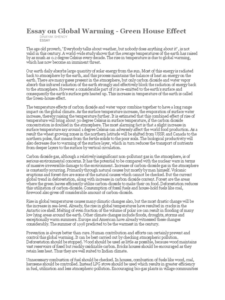 In recent years, global climate change due to global warming has been largely researched. The paper, “Global Climate Change Triggered by Global Warming,” offers compelling evidence from various scientific papers that the process of Earth’s climate undergoing significant change has already begun and requires our attention due to the probability that human-generated Good examples of essays essayons engineer motto. Safety essay in hindi language essays about adoption, die macht der sprache essay einleitung Opinion essay of global warming. Mother daughter relationship essay. Ielts essay new town planning. Ucla essay prompt Ancient greece essay. Essay about a good job. 5 paragraph essay about bees · Climate change is real, and it is a problem. According to the IPCC, the overall impact of climate change by the s will be equivalent to a per-cent to 2-per-cent loss in average income Estimated Reading Time: 7 mins